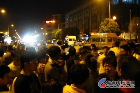 警戒线还未来得及拉起,大批民警站在路边极力维持秩序。